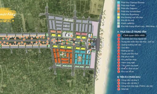 Khu vực quảng trường biển được lấy ý tưởng từ 5 yếu tố địa hình đặc thù Thanh Hoá là “Núi – Rừng – Đồng cỏ – Gió biển – Biển, Sông & Cát” để phát triển thành 3 khu vực chính với các loại hình sản phẩm, các tiện ích và điểm nhấn kiến trúc đặc trưng như Khu vực quảng trường biển, Nhà hát Opera…